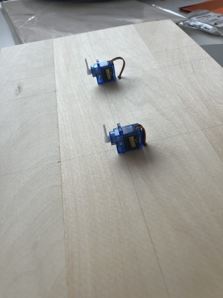 Next, I attempted to build a prototype. I purchased some wooden boards, but I was unable to secure a slot for laser cutting, so I had to cut them by hand. I attempted to cut out some holes the size of servo motors, organised the wiring, and proceeded to install them.
