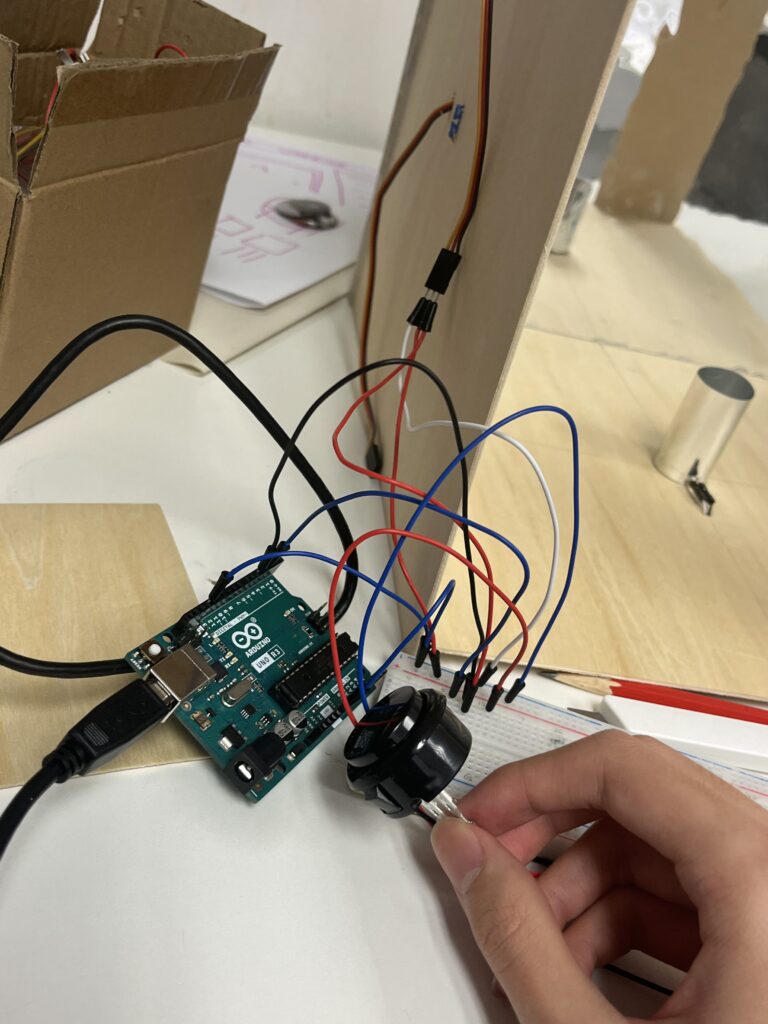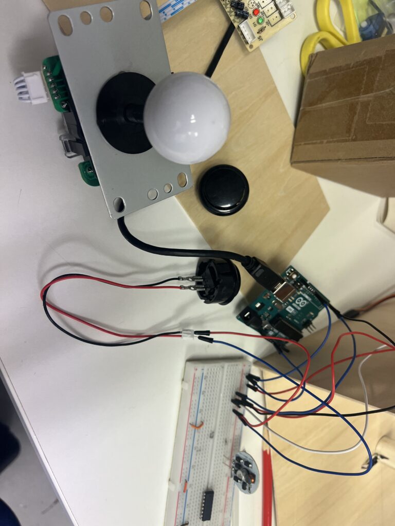 Fortunately, I still had some leftover materials from last year’s Control project—an arcade joystick, a potentiometer, and several buttons. I attempted to connect them to the Arduino board to control the servo motor. This part required some time, so I decided to set it aside for the moment.