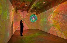 This is an artist I greatly admire. To be honest, his work was the first thing that came to mind when I began my research. Olafur Eliasson employs mirrors and reflections as central elements in his exploration of spatial perception and audience interaction. Works such as Your Spiral View, Mirror Mirror, and Your Star House utilise large-scale polished metal, handcrafted glass, coloured mirrored panels, and structural steel. Through geometric arrangements and angled designs, these pieces create fractured and overlapping visual effects, inviting viewers to experience their own perceptions within the interplay of light, shadow, and space. His mastery of light and shadow has reached the pinnacle, offering me much to learn and draw inspiration from. His work has enlightened me regarding how to set reflection angles and colours, and how to make all of this controllable.